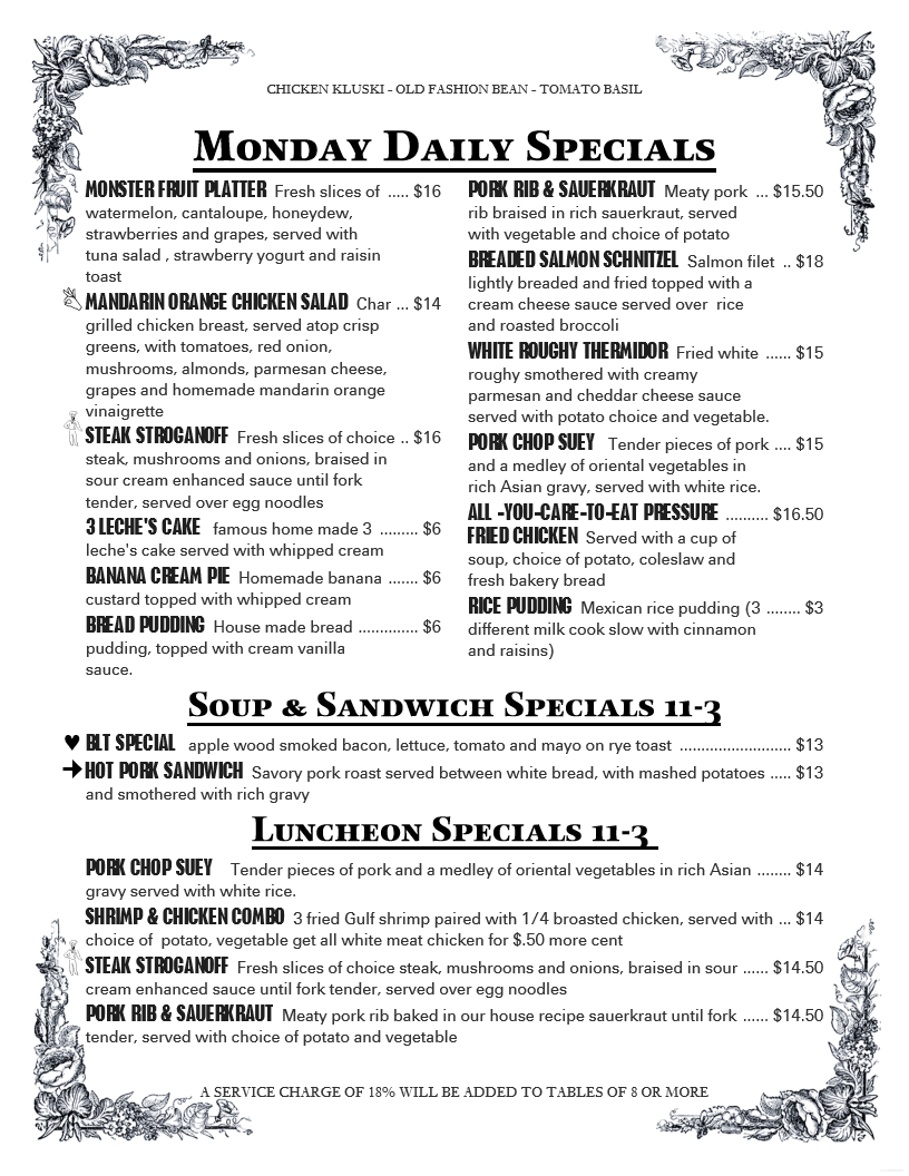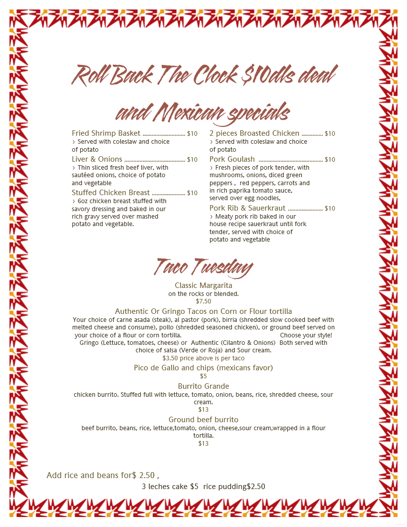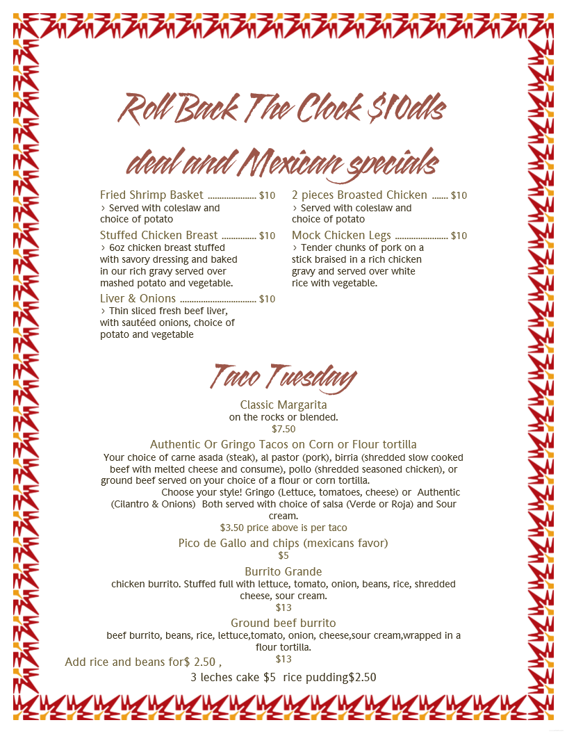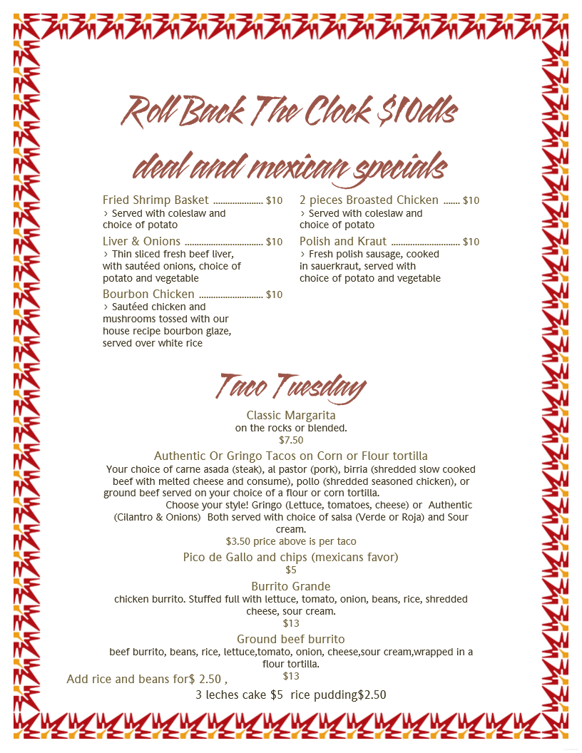 Bar Specials: Monday - Friday 11 am - 3 pm