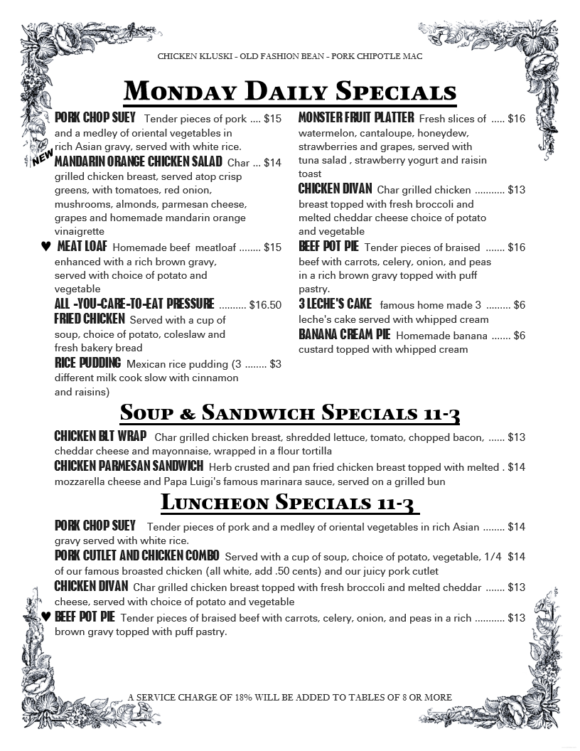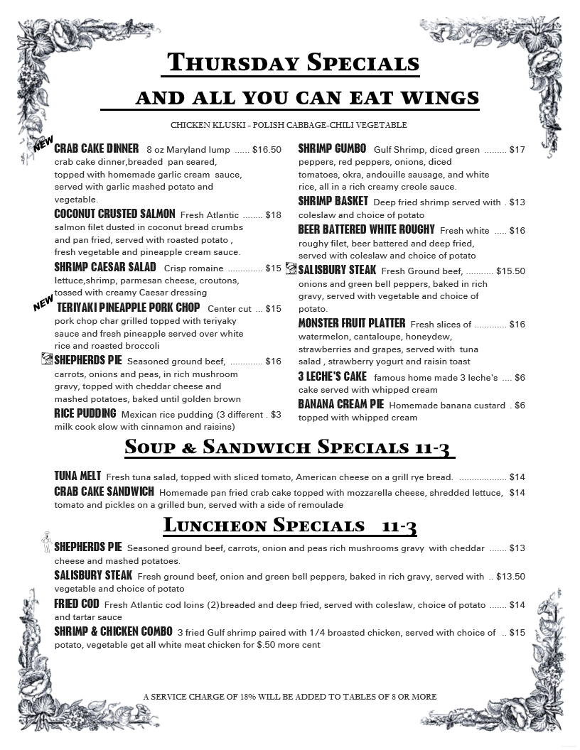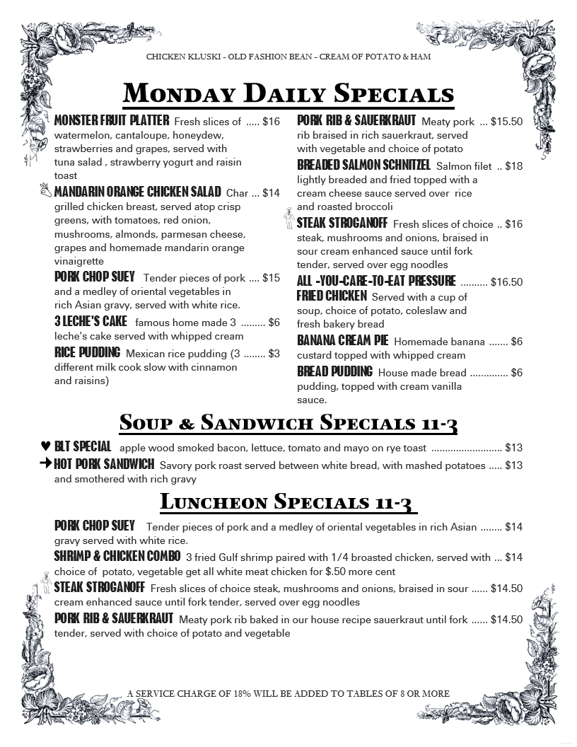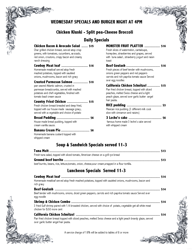 Bar Specials: Monday - Friday 11 am - 3 pm