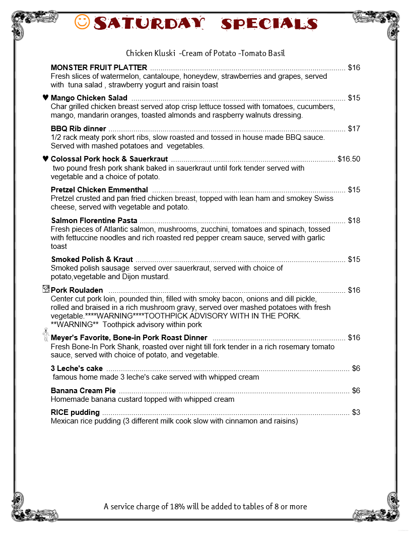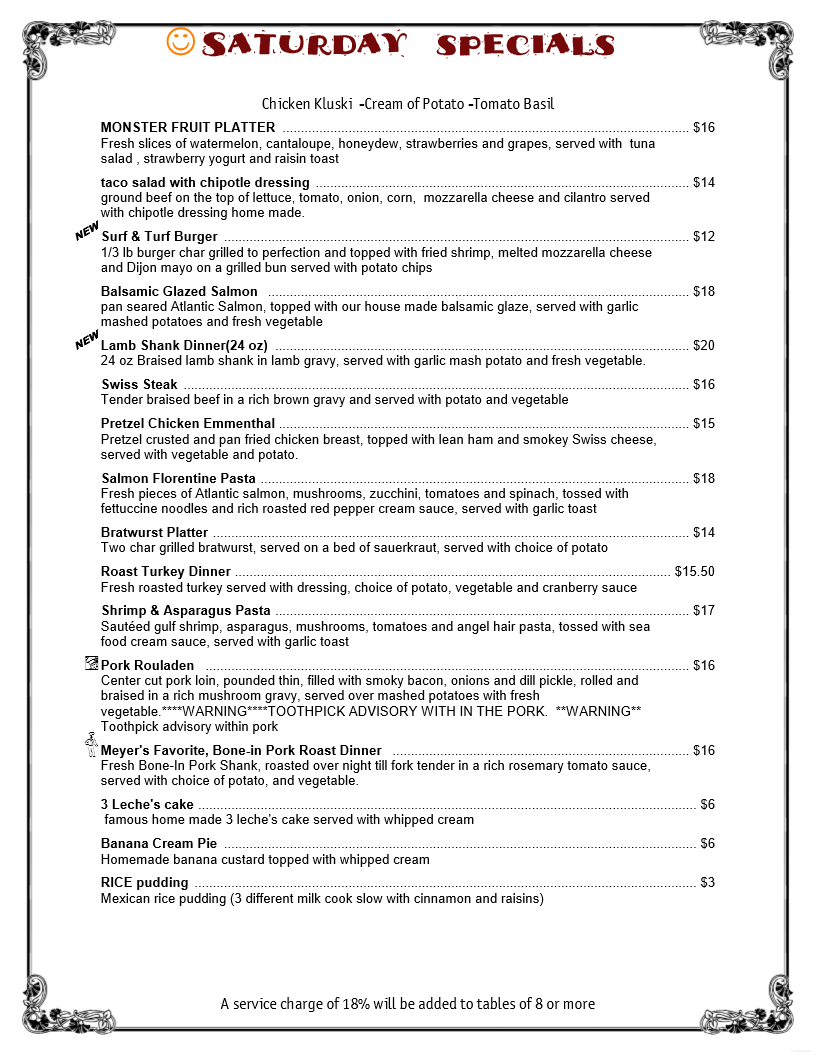 I was at Meyer's for a birthday party. The staff handled everything seamlessly, and the food was fantastic. Our server Michael especially deserves accolades; he's obviously a great leader and team-builder in addition to being an excellent server. Will be back!