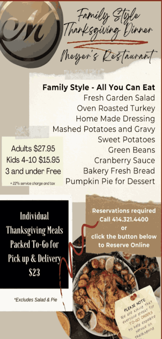 Visit Meyer's Restaurant & Bar for true American comfort food at a comfortable price, right in the middle of Milwaukee's Greenfield.